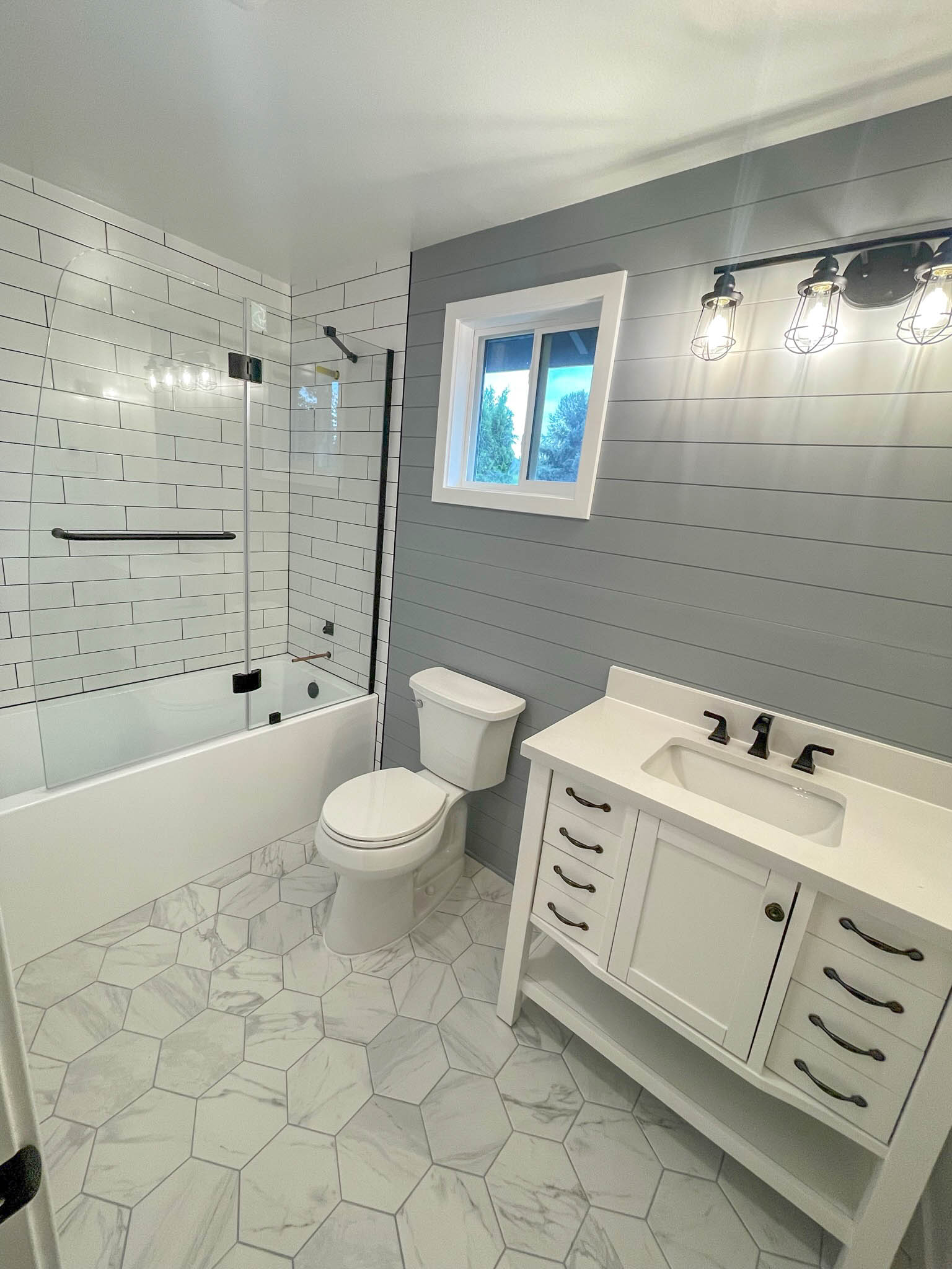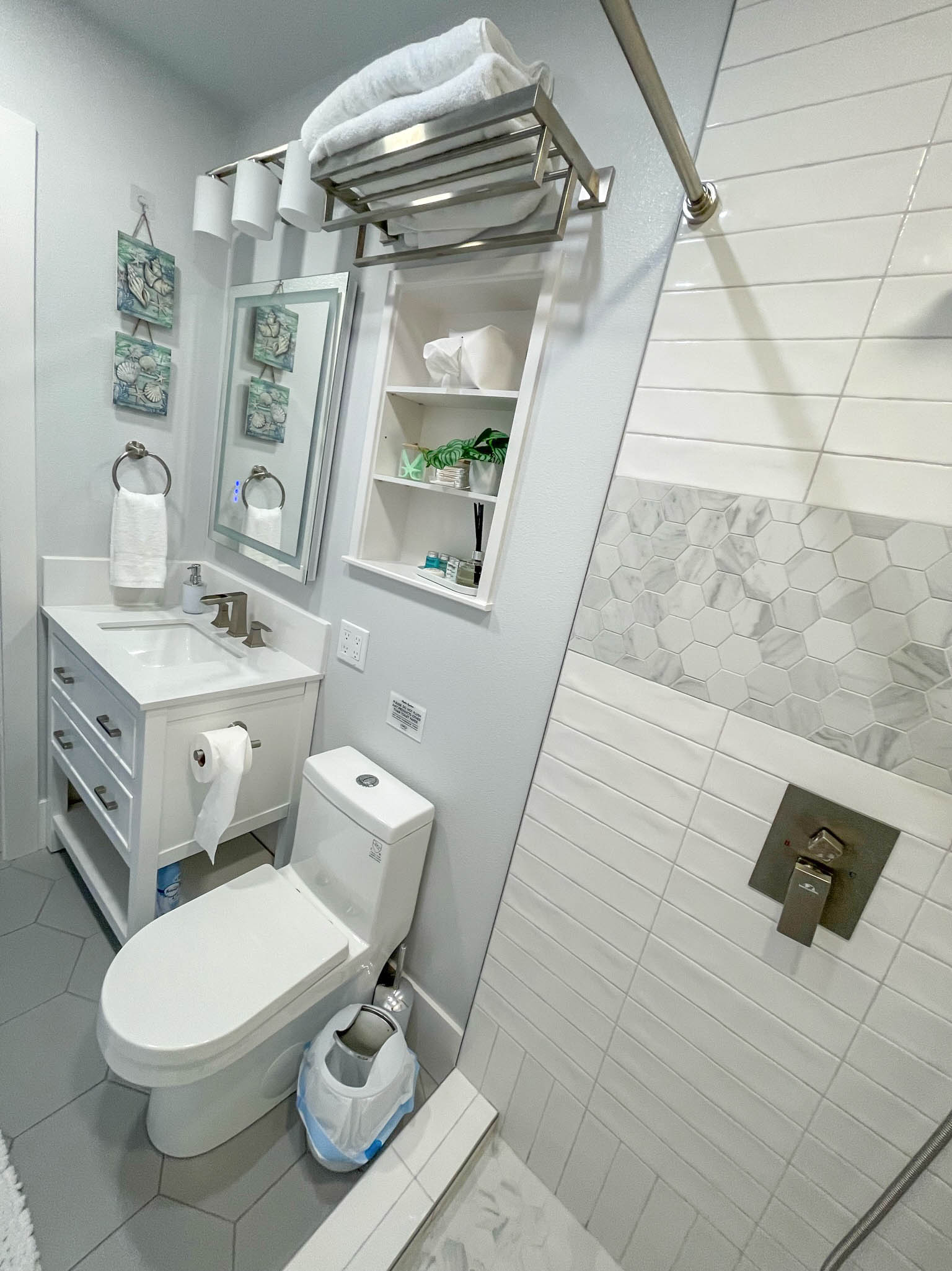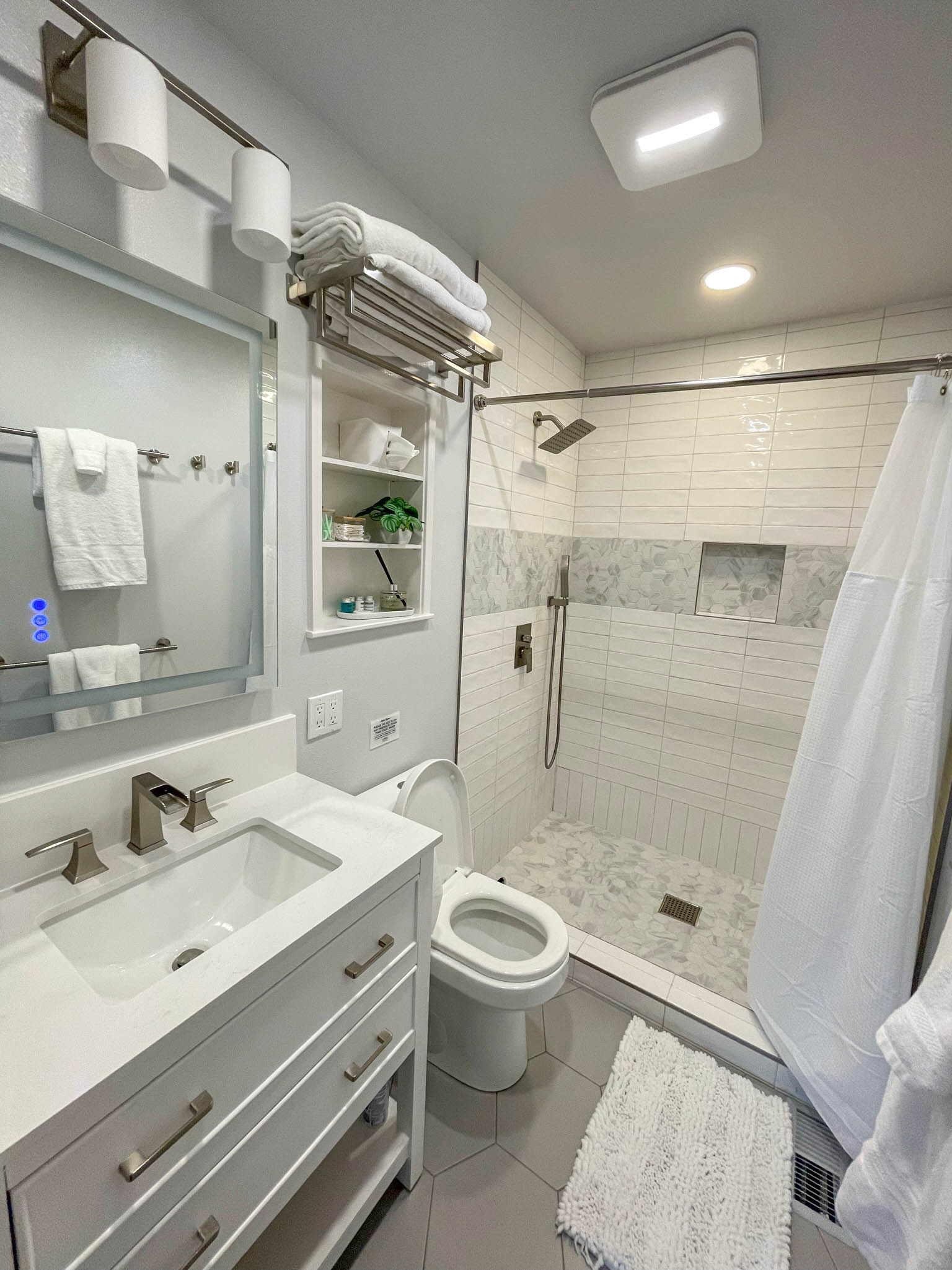 Understanding the needs of a busy family, this renovation focused on maximizing space and durability. The Family-Friendly Functional bathroom features ample storage, easy-to-clean surfaces, and a layout that accommodates multiple users. Bright, cheerful colors and resilient materials ensure that this bathroom can withstand the rigors of daily use while maintaining its appeal.