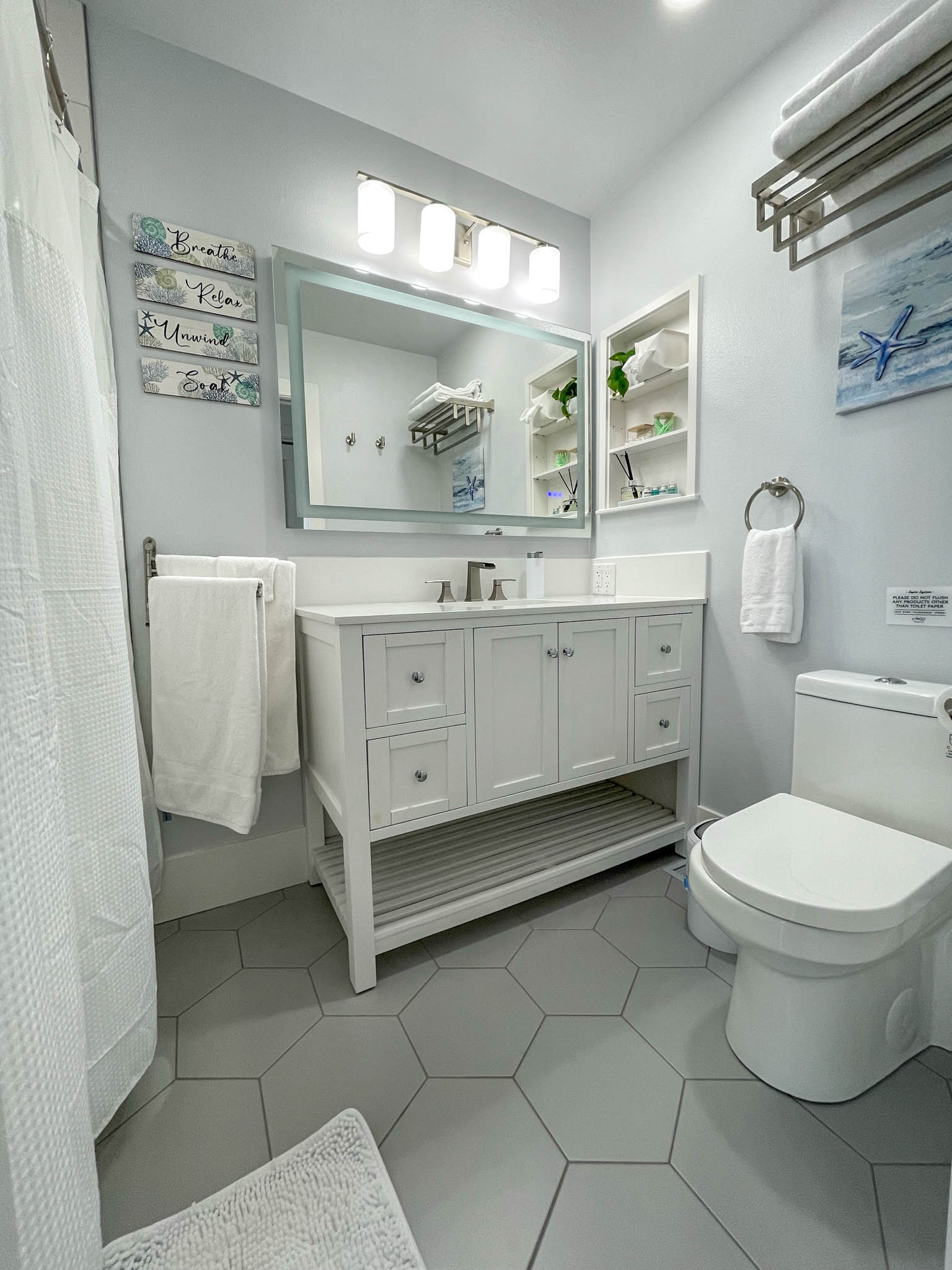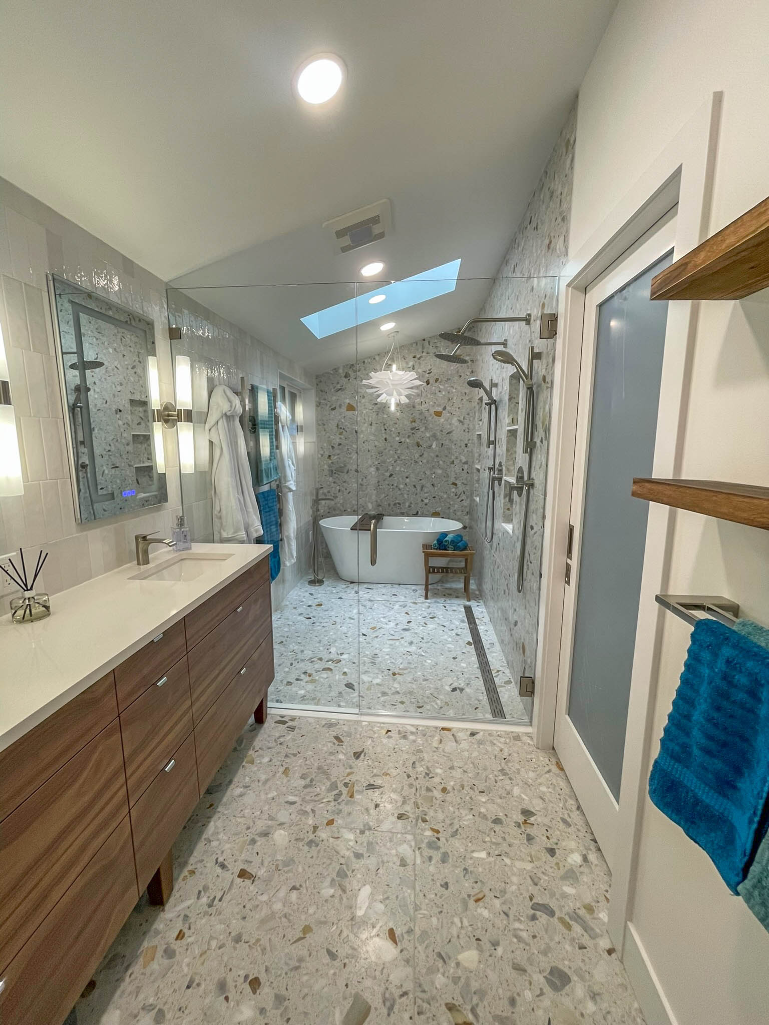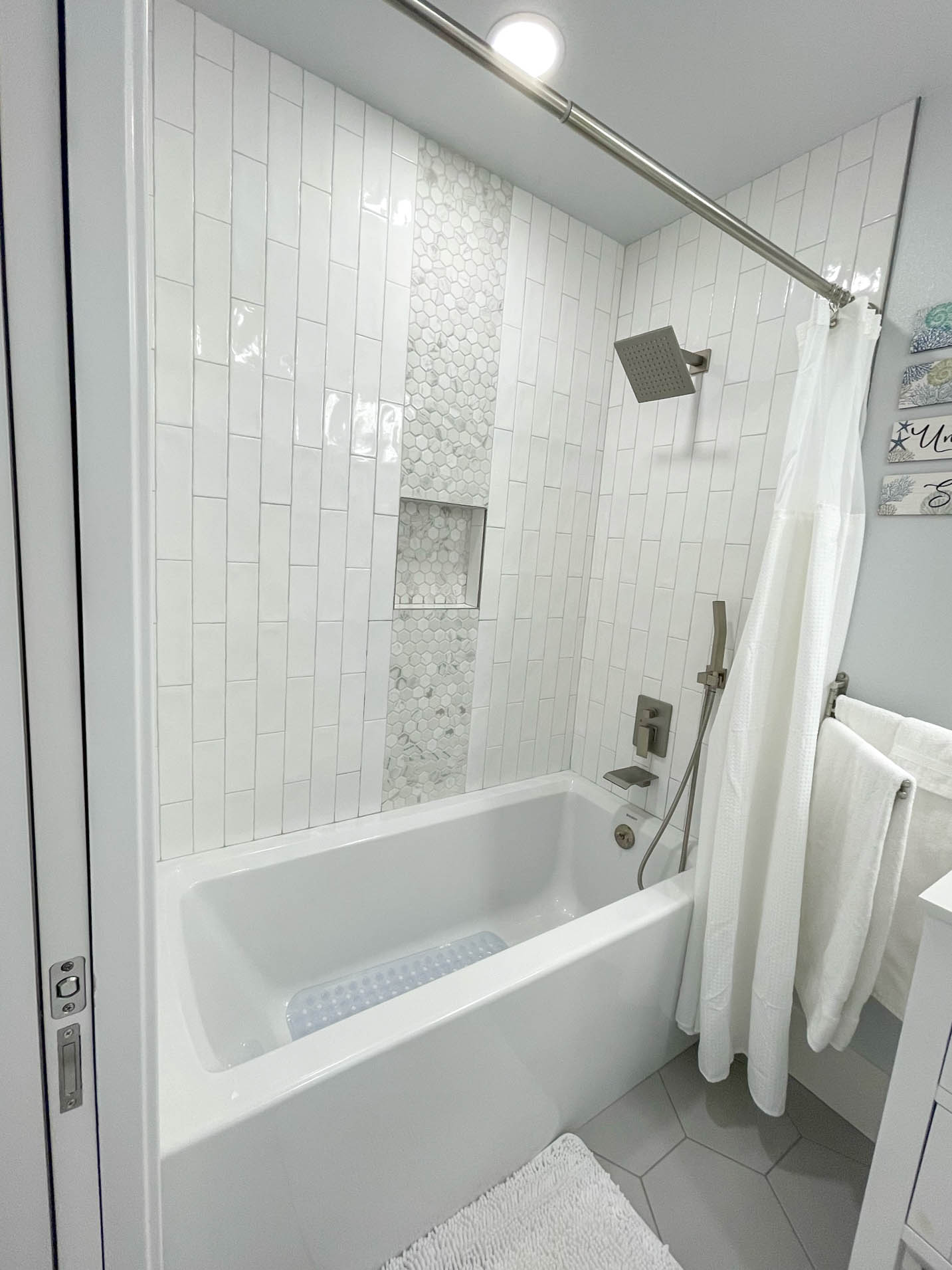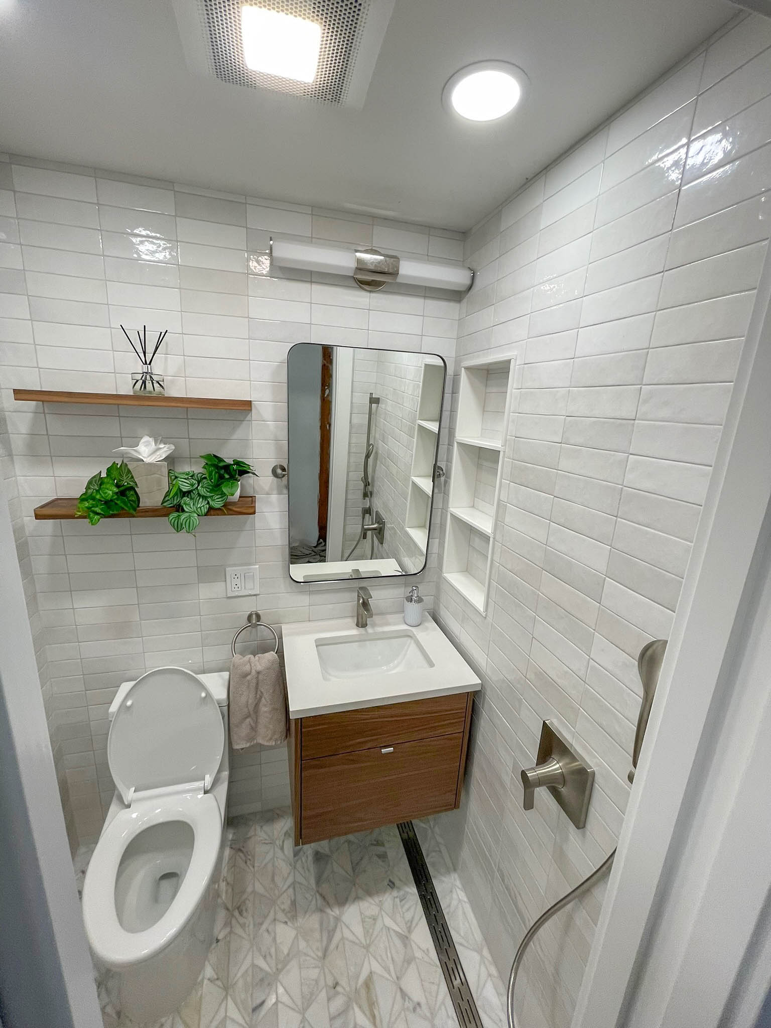 Understanding the needs of a busy family, this renovation focused on maximizing space and durability. The Family-Friendly Functional bathroom features ample storage, easy-to-clean surfaces, and a layout that accommodates multiple users. Bright, cheerful colors and resilient materials ensure that this bathroom can withstand the rigors of daily use while maintaining its appeal.