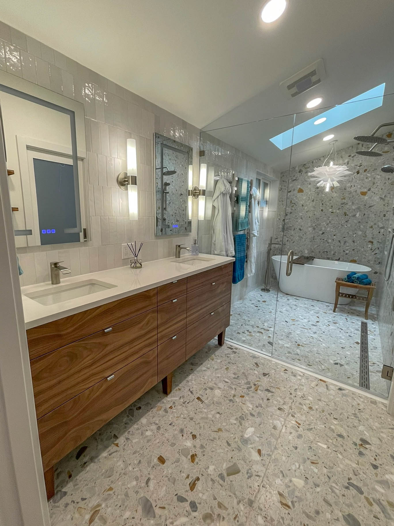 Highlighting our commitment to sustainability, the Eco-Friendly Innovation project incorporates environmentally friendly materials and energy-efficient fixtures. This green renovation not only reduces environmental impact but also offers a sleek, contemporary design. Features like low-flow toilets and recycled glass tiles showcase how eco-conscious choices can lead to stunning and responsible bathroom designs.