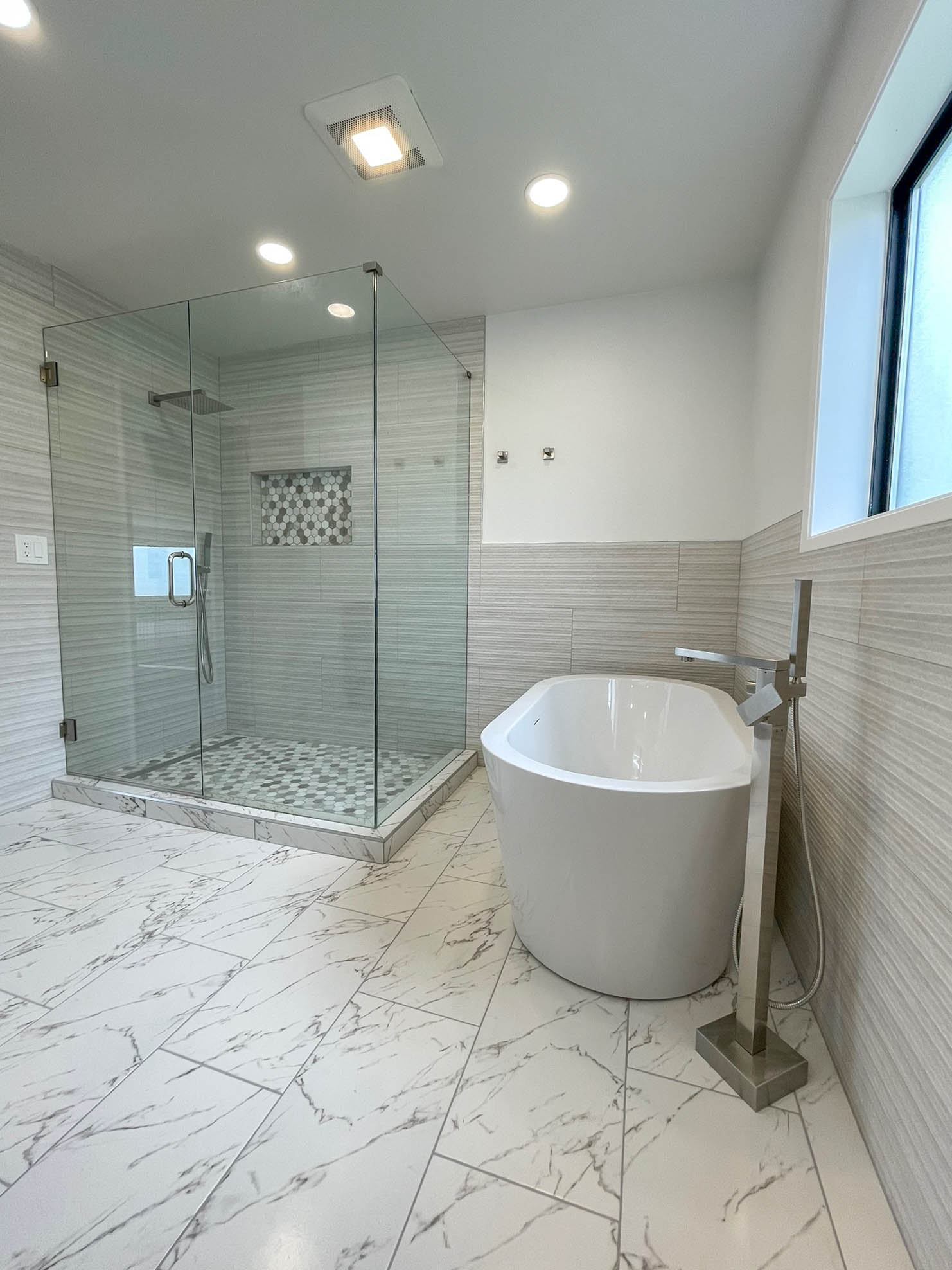 In our diverse collection of bathroom renovations, the Modern Minimalist Makeover stands out for its sleek and functional design. We transformed a dated space into a streamlined sanctuary using clean lines, neutral tones, and high-quality materials. This project demonstrates how simplicity can lead to sophistication, offering a practical yet stylish bathroom solution.