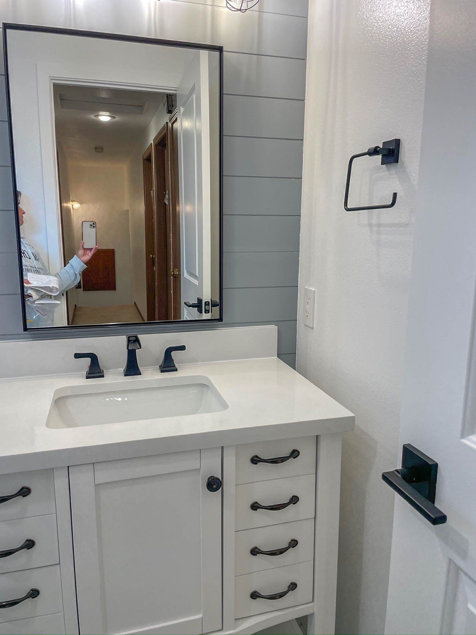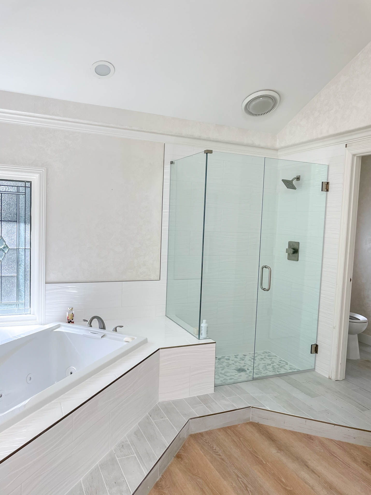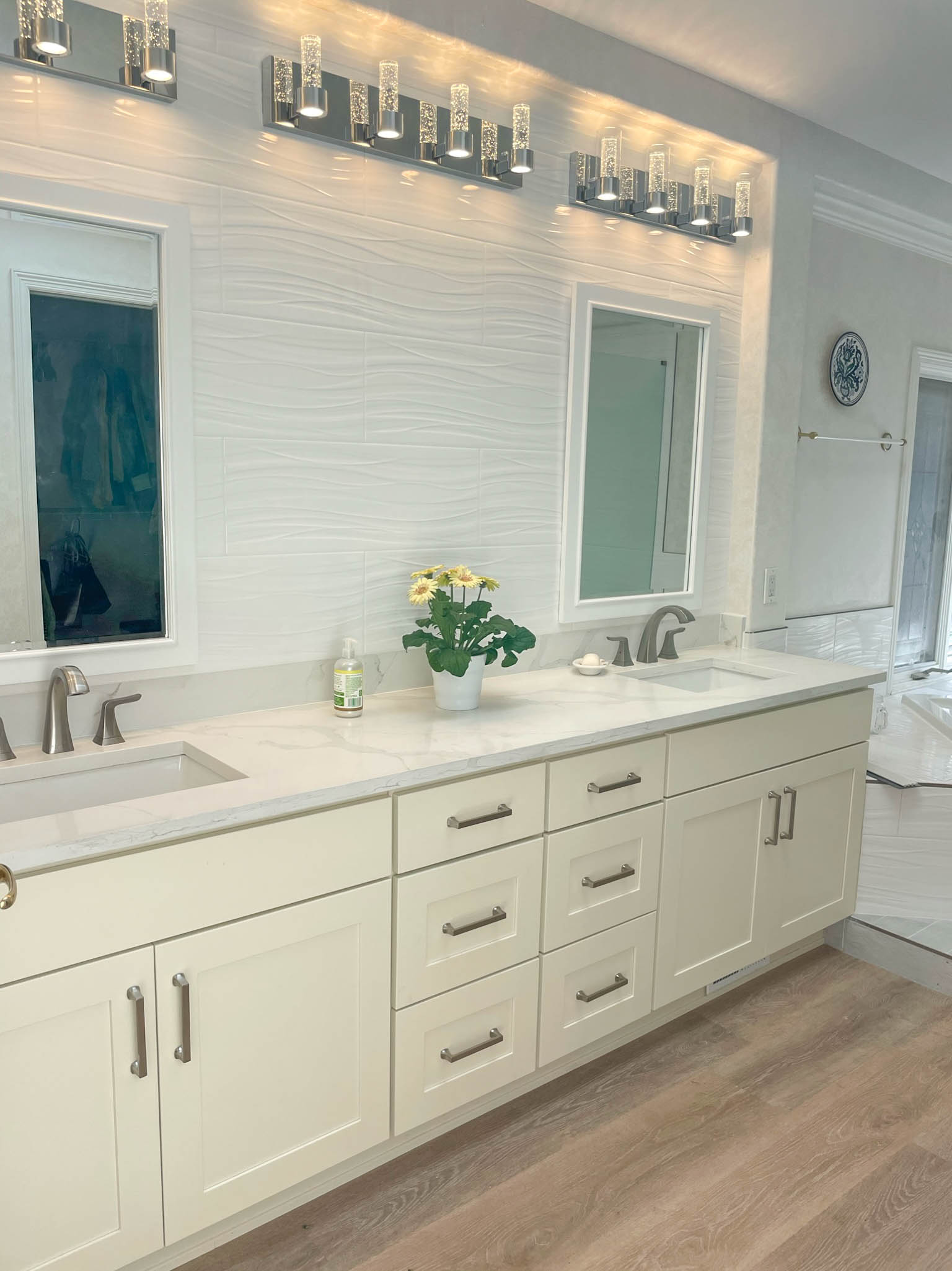 Our Traditional Elegance renovation showcases a timeless design. We revitalized a classic bathroom layout with updated fixtures and rich, warm colors. The use of premium wood cabinetry and stone countertops adds a touch of luxury, blending the old with the new to create a space that feels both familiar and fresh.